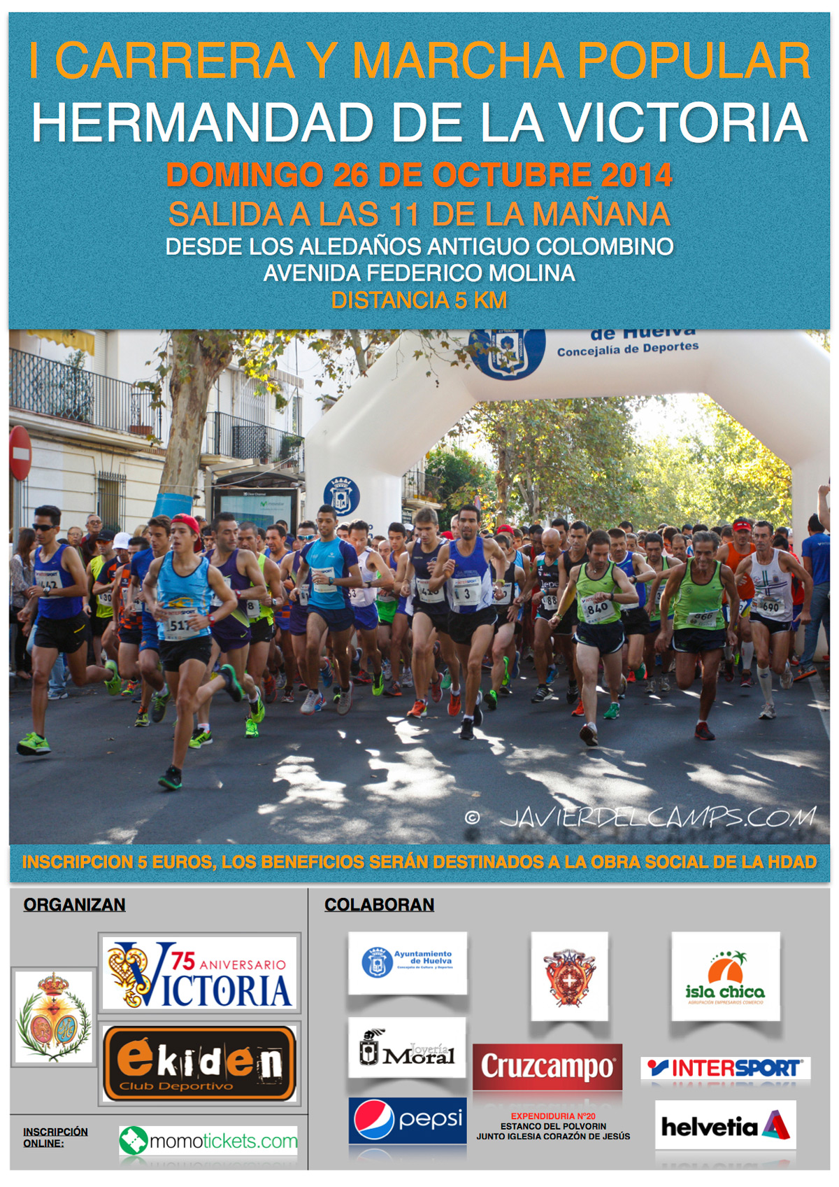 La Hermandad de la Victoria en su 75º aniversario organiza la primera CARRERA Y MARCHA POPULAR HERMANDAD DE LA VICTORIA, que se celebrará el día 26 de octubre de 2014 a las 11:00 h., en un recorrido de 5 km. por la ciudad.